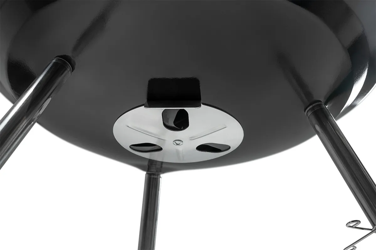 - Удобная регулировка подачи воздуха на крышке и металлическая ручка регулировки на жаровне позволяют точно закрывать или открывать доступ кислорода внутрь гриля, оптимально настраивать температуру приготовления;