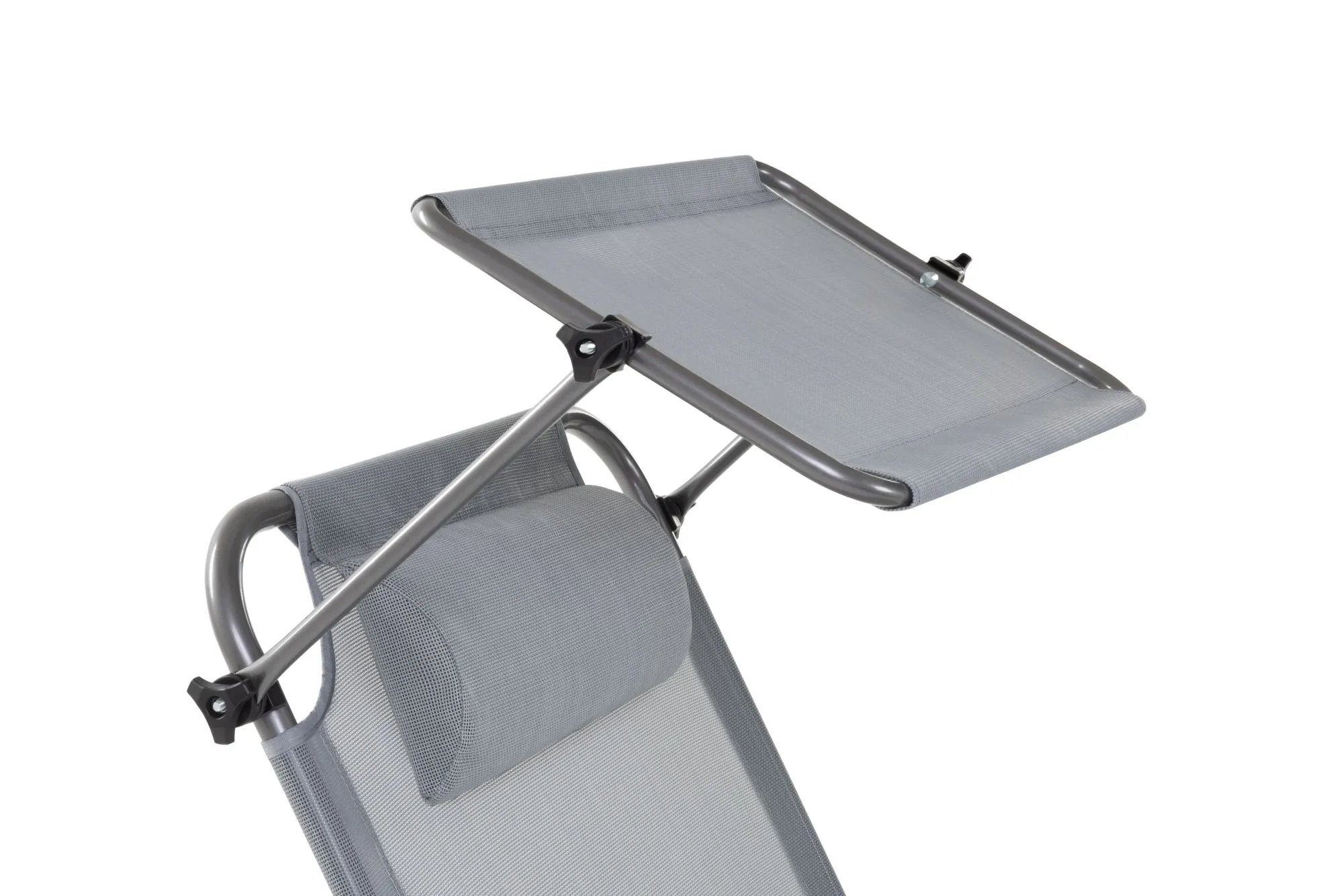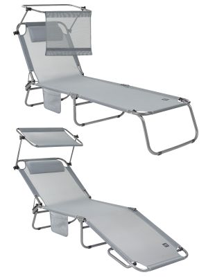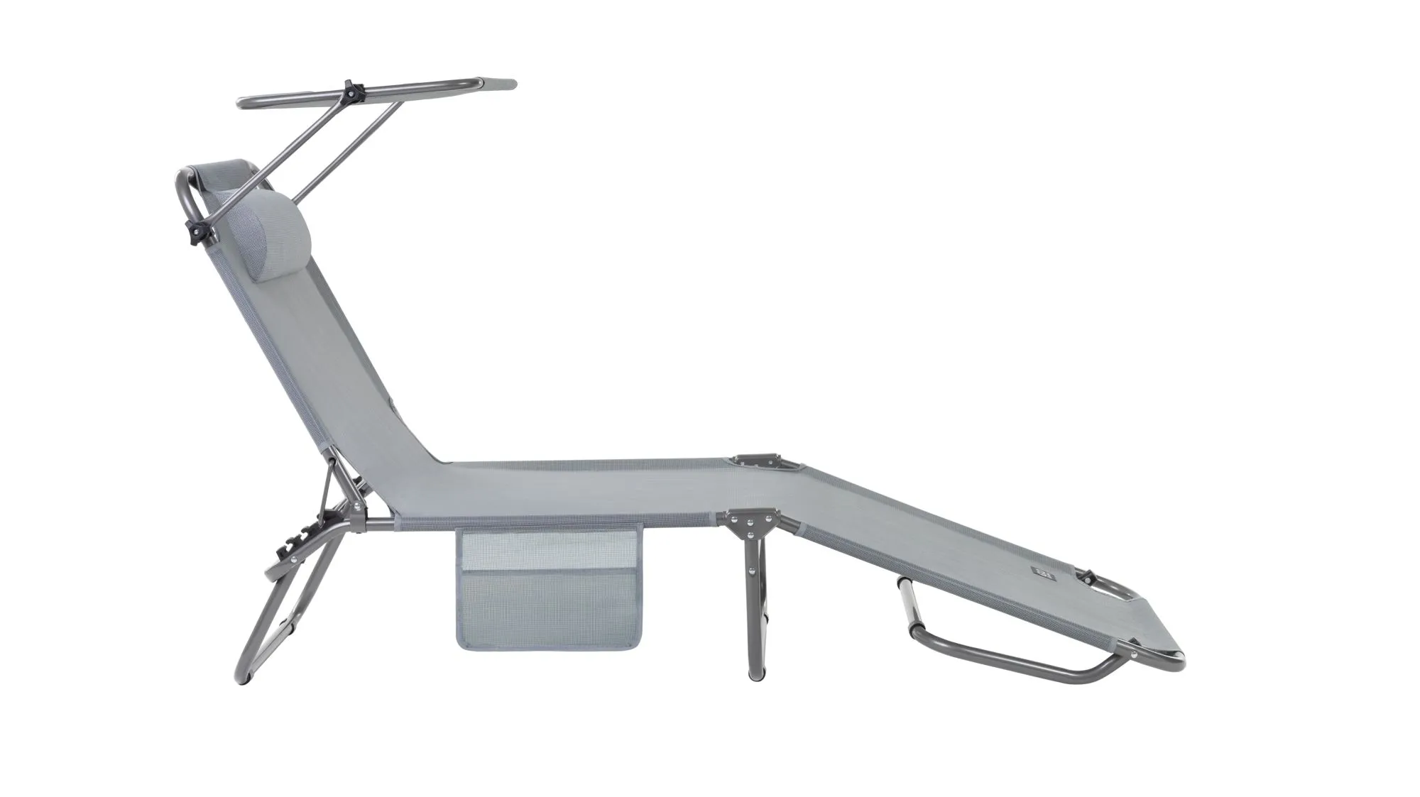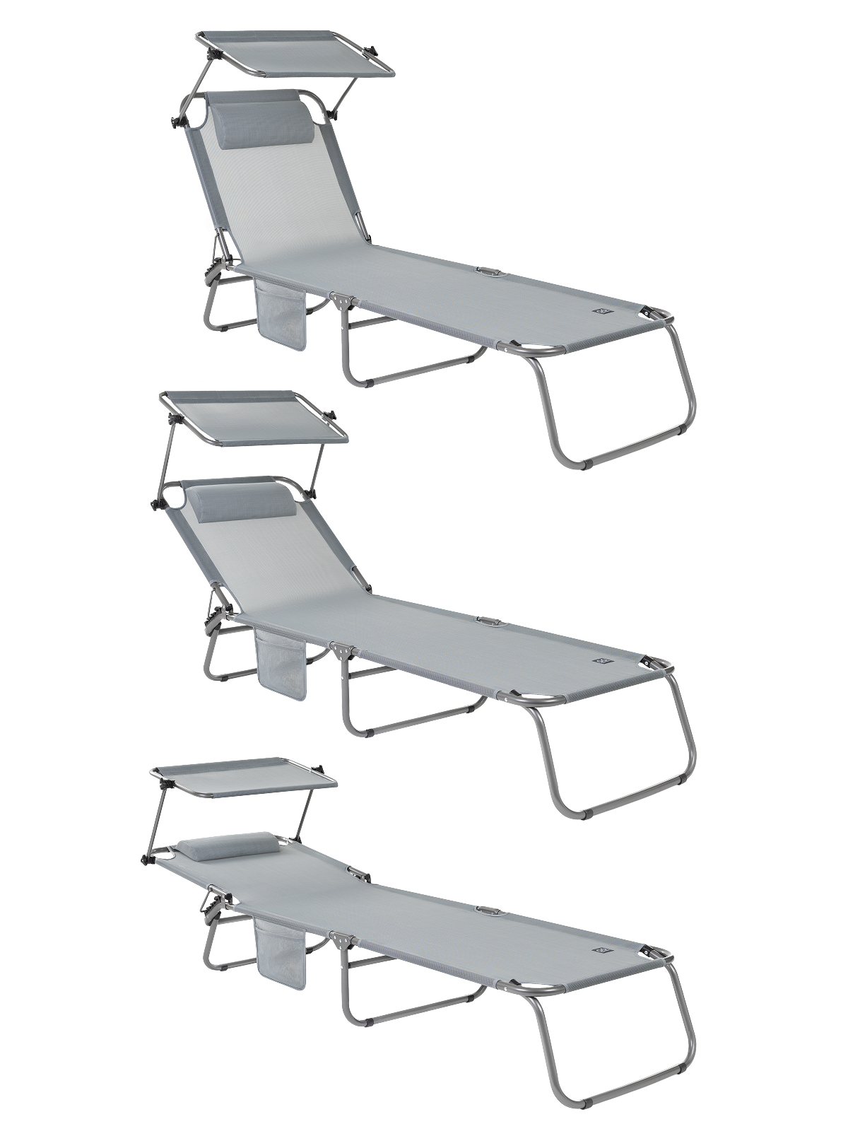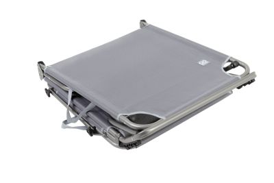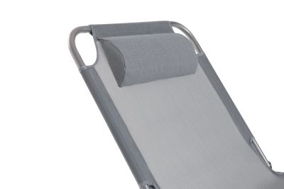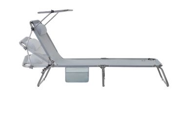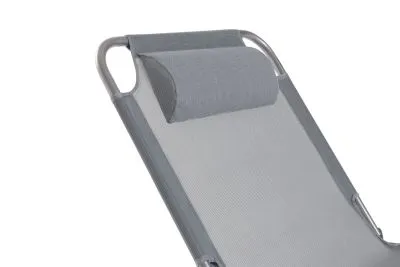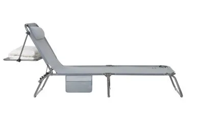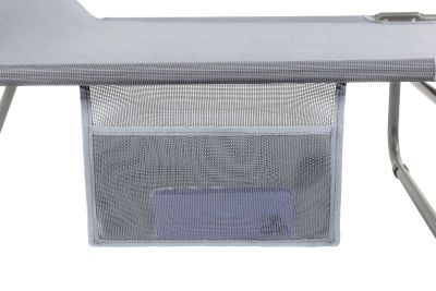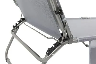 3-х позиционная регулировка наклона спинки позволяет принять наиболее комфортное положение. Для большего удобства шезлонг имеет боковой карман, в который можно положить необходимые Вам вещи. Шезлонг можно хранить на открытом воздухе в течение всего сезона так как сиденье и навес от солнца сделаны из сетчатого материала TEXTILENE устойчивого к ультрафиолетовому излучению и образованию плесени. Благодаря своей структуре материал не впитывает влагу, быстро сохнет и очень простой в уходе. В сложенном состоянии не занимает много места, имеет удобные лямки для переноски.