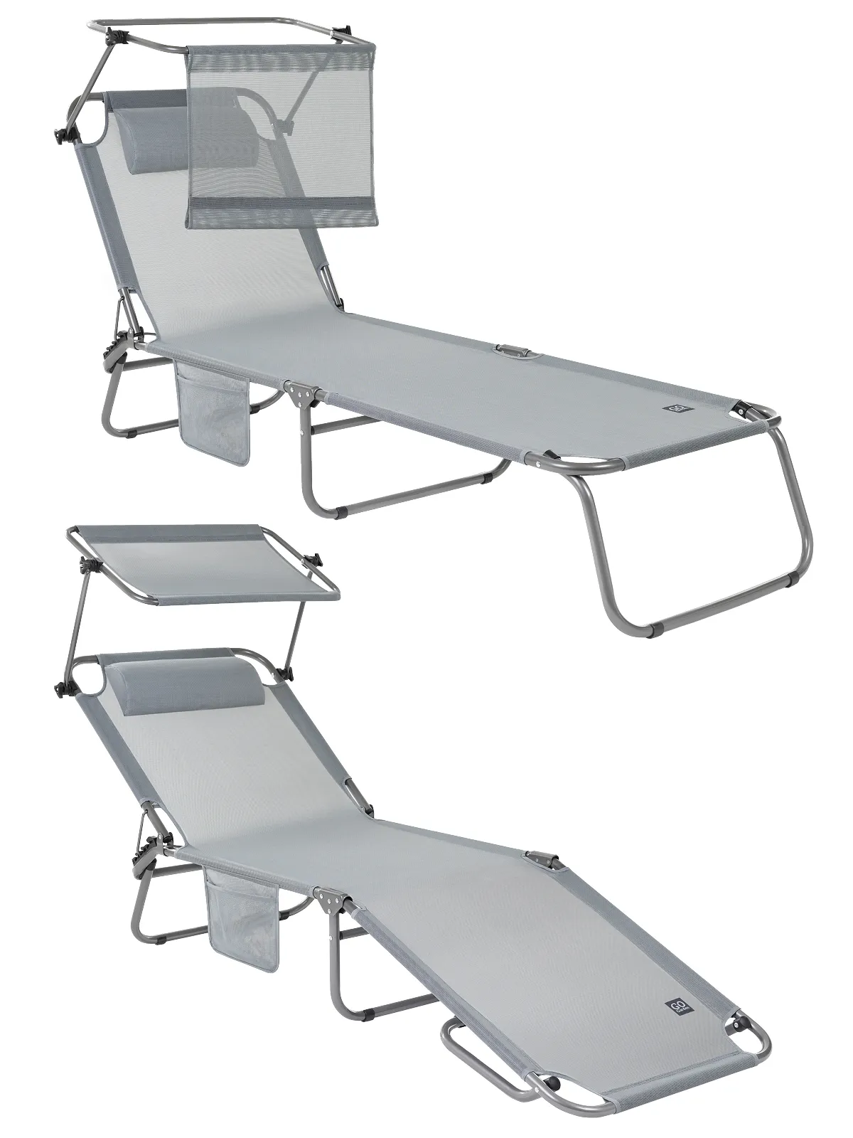 Прочная стальная рама сечением 22мм выдерживающей нагрузку до 120 кг. Навес от солнца позволяет комфортно загорать или отдыхать на открытом воздухе.