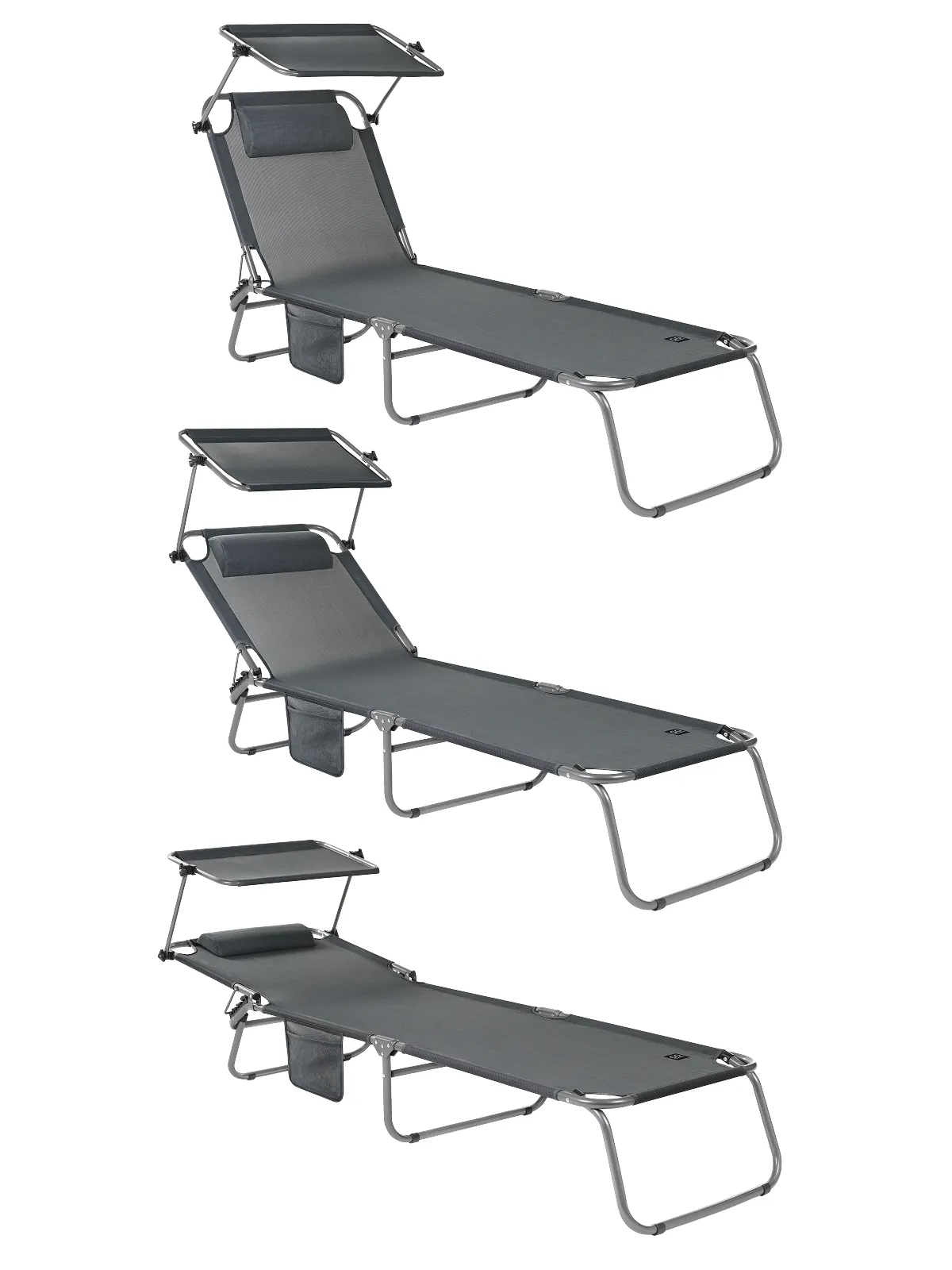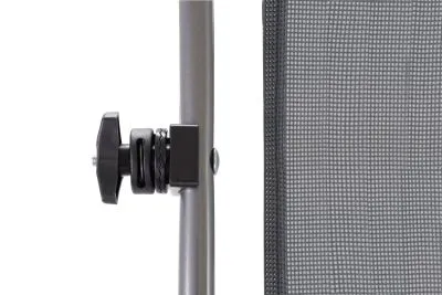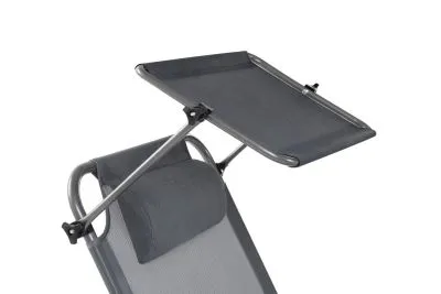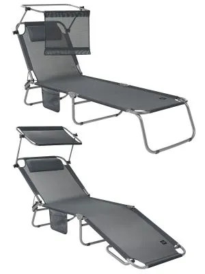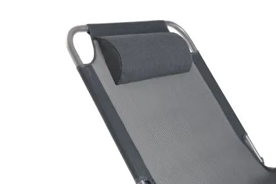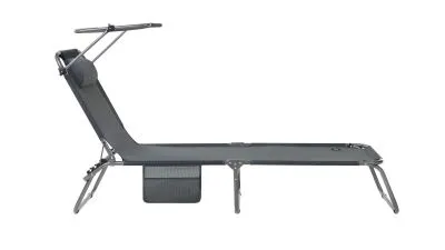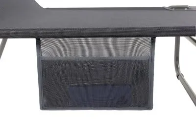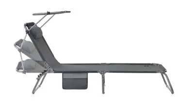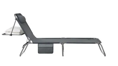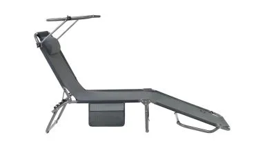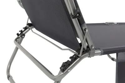 3-х позиционная регулировка наклона спинки позволяет принять наиболее комфортное положение. Для большего удобства шезлонг имеет боковой карман, в который можно положить необходимые Вам вещи. Шезлонг можно хранить на открытом воздухе в течение всего сезона так как сиденье и навес от солнца сделаны из сетчатого материала TEXTILENE устойчивого к ультрафиолетовому излучению и образованию плесени. Благодаря своей структуре материал не впитывает влагу, быстро сохнет и очень простой в уходе. В сложенном состоянии не занимает много места, имеет удобные лямки для переноски.